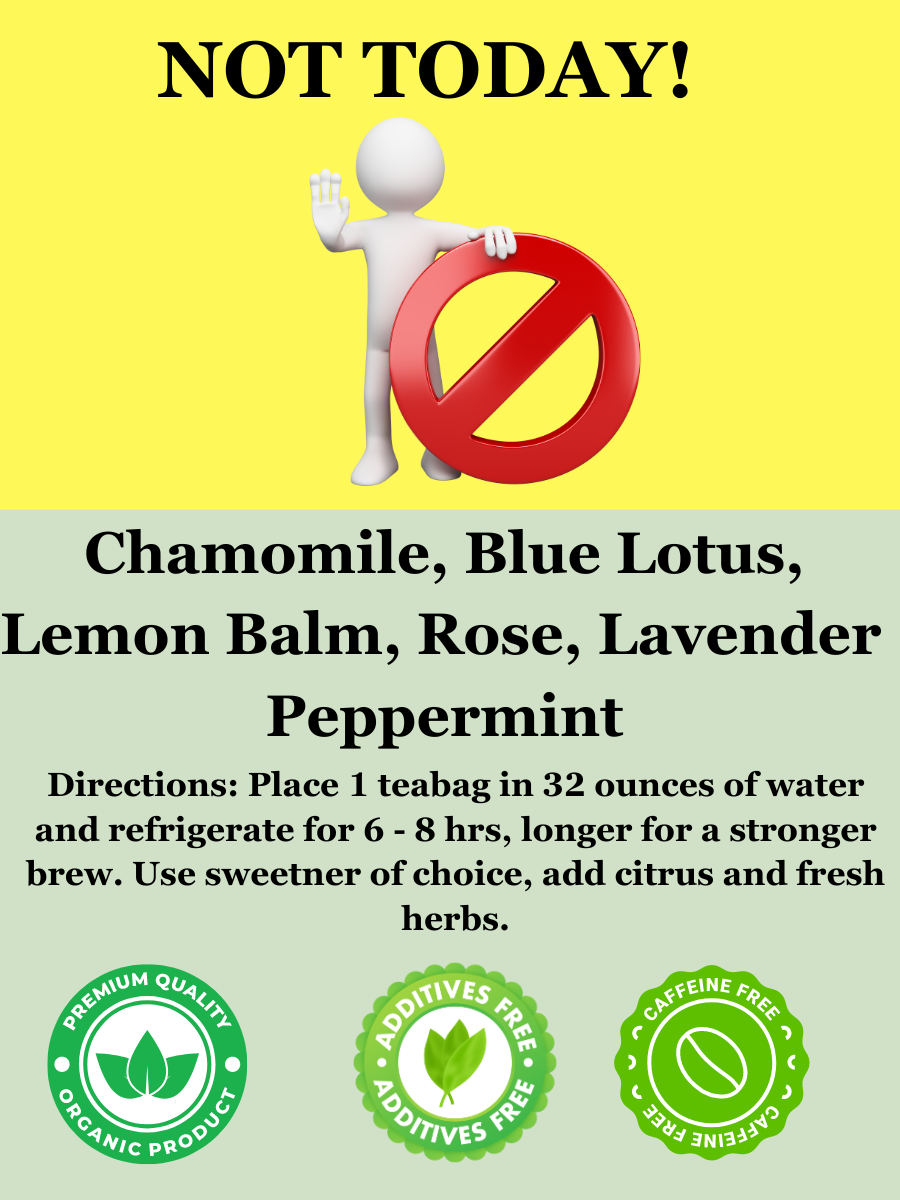 Organic Chamomile, Organic Blue Lotus, Organic Lemon Balm, Organic Peppermint, Organic Lavender.